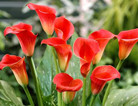 红色马蹄莲象征圣洁虔诚,吉祥如意,永结同心。注:马蹄莲花有毒,内含大量草本钙洁结晶和生物碱,误食会引起昏眠等中毒症状。